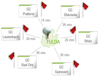 Herzlich willkommen in der reizvollen Golf-Region mitten in Deutschland! In der herrlichen Mittelgebirgslandschaft rund um die Barockstadt Fulda haben Sie die Auswahl unter sechs gepflegten Golfplätzen - aus allen Himmelsrichtungen bequem erreichbar. Freuen Sie sich an der intakten Natur von Rhön und Vogelsberg, entdecken Sie den Charme der geschichtsträchtigen Stadt Fulda und genießen Sie die Gastlichkeit unserer leistungsfähigen Hotels und Gastronomie. Sechs Golfplätze, Natur pur, viel Kultur - und das alles mitten in Deutschland. Ideal für einen Kurzurlaub oder einen Zwischenstopp auf der Reise von Nord nach Süd, von Ost nach West. GOLFDESTINATION FULDA IM ÜBERBLICK